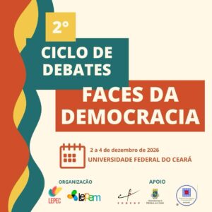 Nos dias 02 e 04 de dezembro de 2025, o Lepec promoveu, em parceria com o Lepem (Laboratório de Estudos em Política, Eleições e Mídias), o 2º Ciclo de Debates Faces da Democracia, com participação de professores e estudantes no Departamento de Ciências Sociais da UFC.