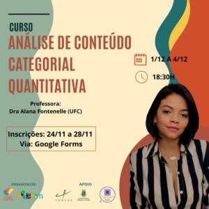 Entre os dias 02 e 04 de dezembro de 2025, o Lepec promoveu o minicurso Análise de Conteúdo Categorial Quantitativa, ministrado pela professora Alana Fontenelle.