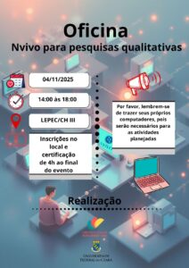 Além do uso de NVivo para pesquisas qualitativas, as próximas oficinas do Lepec terão como foco pesquisas quantitativas e o uso de Inteligência Artificial em pesquisa.